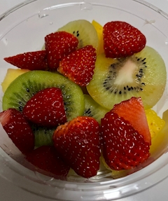 おはようございます🌷 フルーツパック豪華っ🍓🥝 遅い時間スーパー行ったら値引きされててラッキー✨ このパック買ってたらキウイ苦手寄りだったけど好きになってきたさいきん🥹 食べ続けるって大事なんだあて思いながらばくばくたべてた朝ごはん☀️