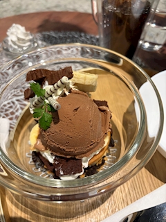 なぎさです❕透明なお椀に入ったチョコパフェ美味しかった☺️‼️質量たっぷり🫶ここのご飯なんでも美味しいからまた行きたいセットでココア頼んだら甘いものづくしで、さすがにミスったキツそうな顔で甘さやっつけてたら笑われた楽しかったなぎなぎ