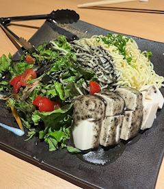 こんにちは居酒屋さんでラーメンサラダ頼んだらこれ出てきた‼️🥹黒ゴマ‼️いろんなお店でラーメンサラダよく食べるけど、白ゴマじゃなくて黒ゴマなのは初めて🥹🫶お豆腐も付いててヤミーでした🫧今週末は三連休!出勤するのでよろしくお願いします!