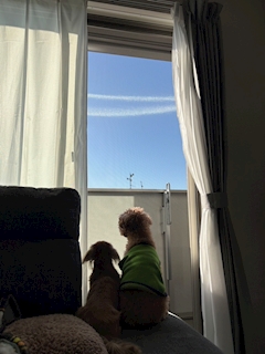 おはにょーんこの後ろ姿たまらなくかわいいお外見て黄昏てるのかな❔☺️天気も良くていい日だったんだな~☀️♥️