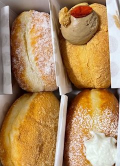おはようございます🌷 ドーナツお土産もらった🍩 中のクリームが牛乳!って感じで好みすぎる シンプルきなこ味も美味だった🤤 突然の糖分幸せ、、 1日1ドーナツ🍩🍩