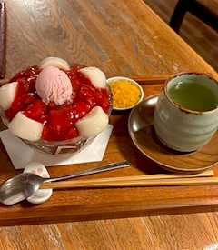 こんばんは!いろはですꕤ︎︎いちご!白玉!いちご!🍓だいすきな苺づくし!⟡.·*.写真では分かりにくいけど白玉が大きすぎてびっくりした👀笑口に頬張ったら喋れません!笑でも、もちもちで美味しかった~(っ`ᵕ´c) ̖́-カフェの中には猫ちゃんもいて癒された🐾可愛い背中のお裾分け♡⃛
