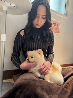 おはよ!!昨日はおやすみだったから犬カフェいってきたら可愛い子ばかりで癒された💕ちなみに黒髪にしたよ!iPhoneから送信