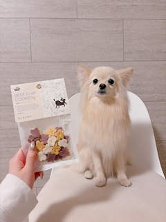 可愛いいぬのおやつ見つけた松坂牛を使ったクッキー黒毛和牛のレバーも買ったよ高級そう🥩おやつのために頑張ってきめてた🐶