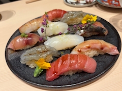 おはようございます 1日目は着いたのが遅かったから夜ご飯スタート おすし! すすきの以外であんまり食べないから福岡でも食べてみた ぜーんぶおいしかった!! お皿もドラえもんとかで可愛かった 安定に日本酒たらふく飲んだよ