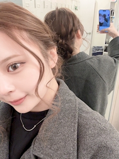 おはようございます!にじかです✨️寝起き顔が浮腫みすぎて痛いです🤣この前のアップヘア気に入りすぎて沢山写真撮ってた🫣今日はお休みです🫶🏻️ ̖́-お店は営業してるので是非✨️