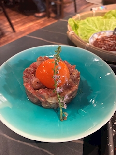 こんばんわんユッケ🫨🫨🫨🩷🩷🩷焼肉屋さん行くと毎回絶対に頼む🙂↕️ほんとにおいしいこれ和牛のユッケだったんだけど卵黄も濃厚で和牛の脂もしつこくなくて本当に相性抜群すぎた🥹これだけで白米進むレベルで美味いお腹いっぱいすぎるとドレスキツくなるから我慢した😭たくさん美味しいところ連れてってくれるお客様本当に大好きいつもありがとうございます😭🩵