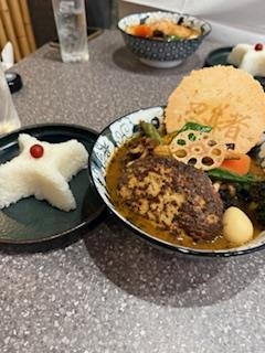 二日酔いの時ってなんでスープカレー食べたくなるんだろ??😎ハンバーグトッピングしちゃった💦美味しかった🤤