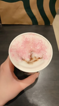 この季節になると桜系の食べ物が増えるので嬉しい今日この頃…🌸最近ハマってるのは豆乳の🌸味多分季節限定なんですかね?見かけたら買っちゃいます😖💖そして、期間限定といえばスタバ!も!桜のドリンクがっ…✨️ホットの桜咲くよラテを飲みました!1度カップを閉めちゃったからくずれちゃってるけど、桜の木のラテアートがされてるんです!この間お友達にスタバチケットのドリンクとフードを貰ったのでついでに一緒に頼んだクロッカンっていうパン?も頼んだら、それががめちゃめちゃ美味しくて😋めちゃめちゃにオススメです💖食べかけごめんなさい笑みんなも是非食べてみてね!(スタバの回し者ではないです、笑)今日から日曜日までずっといるのでラテじゃなくてお酒乾杯しましょ🍻待ってます☺️