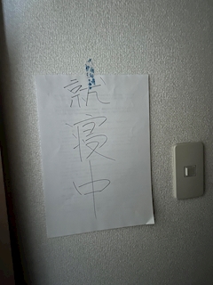 こちらは、起こすな‼️と言わんばかりの張り紙です!大学卒業間際、友達とルームシェアしてたのが懐かしい~~そんな私は社会人一年目を無事に完走出来そうです🏃♂️🏃♂️お待ちしてます🌟