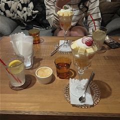 こんばんわもえです🫶🏻デンキ茶房初めて行った꒰՞⸝⸝ᴗ ·̫ ⊂՞꒱🍰チーズケーキパフェおいしかったっ!!夜中の3時までやってるからお仕事終わり甘いもの食べたくなっても行けるのうれしい🥹💞レモネードもおいしかった🍋✨他にも気になるパフェあったからまた行きたい(っ <ᐡ)💭♥️